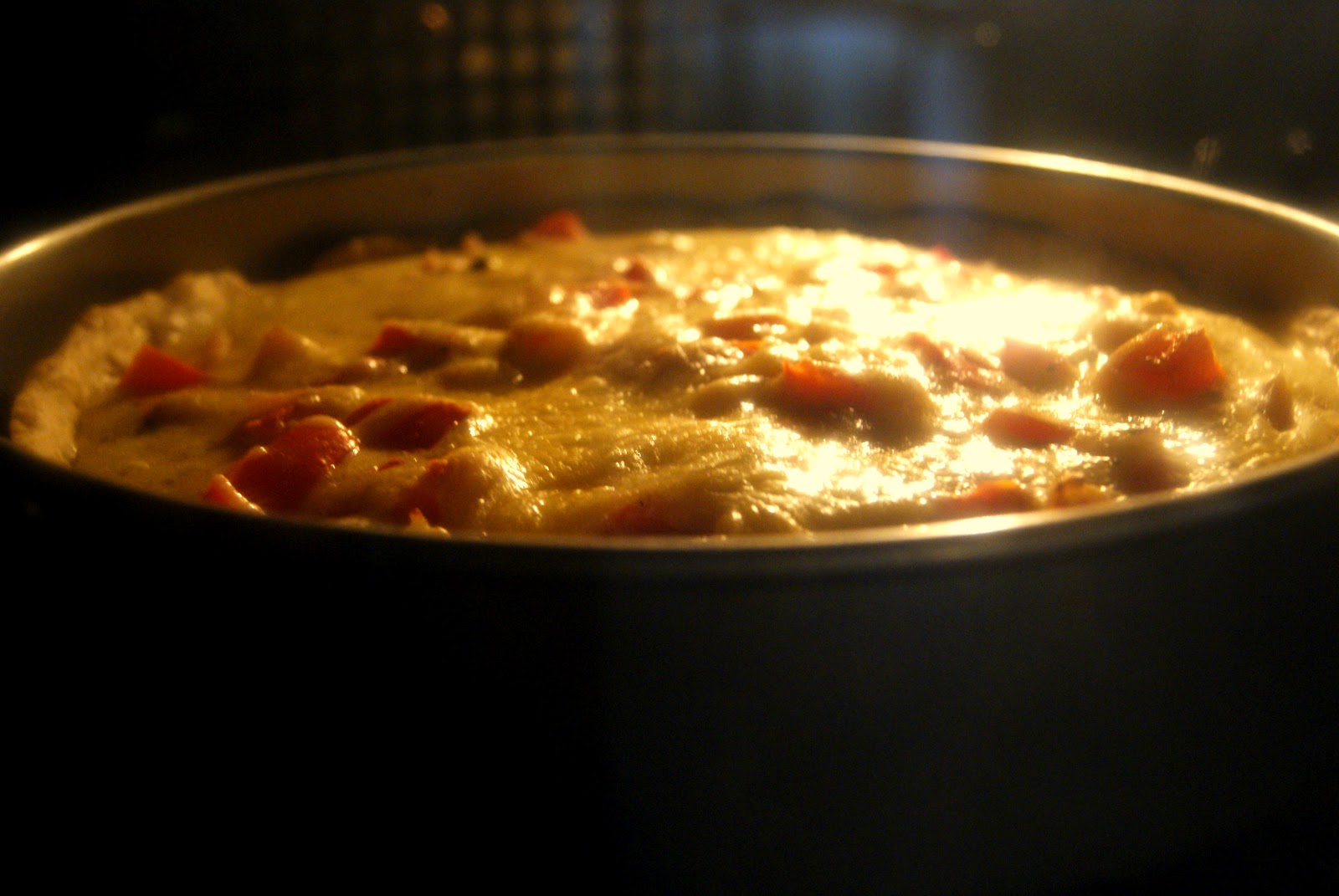 Nieco utrudnione miałam zadanie, bo musiałam sama sobie poradzić z pokrojeniem cebuli. Podchodziłam do tego zadania kilka razy. Aż w końcu się udało. Ile przy tym łez straciłam, tylko wiem ja! J Po wzlotach i upadkach, udało mi się pokroić wszystkie składniki, nie tracąc przy tym żadnej części ciała. Olej nie zachlapał całej kuchni, ani nie musiałam zbierać resztek z podłogi. Po pobycie w piekarniku, tarta wylądowała na talerzach i było pysznie! I co najważniejsze, nadal mam chęć pichcenia i pisania o tym!