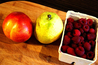 Owoce na farsz dobieramy według własnego uznania. Ja dodałam gruszkę, garść malin i nektarynkę.
